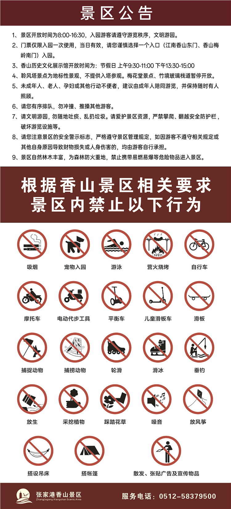 2.进入景区请配合防火检查,严格遵守景区防火规定,不在山林、草地等易燃区域使用明火,防止火灾事故发生。